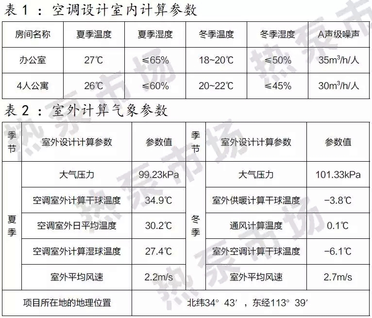 本項目為鄭州五云山一處度假公寓的中央空調工程,本棟樓為辦公及公寓綜合樓,新建建筑,一層為7間辦公室、2~7層為108間公寓及6個值班室,總建筑面積為4630.73㎡,地上7層總建筑高度為26.5m。建筑結構為框架結構,建筑耐火等級為二級,屋面防水等級為Ⅰ級,抗震設防烈度為7度。由甲方招標圖紙知,該項目設計建筑采暖空氣調節能耗76kWh/㎡;低溫熱水地板輻射采暖系統開發商已安裝完畢,做到管路對接即可。
