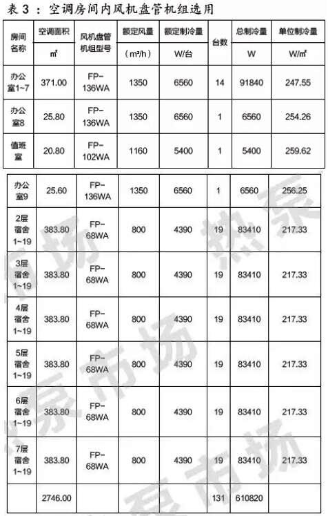 本項目風機盤管選型結果如表3: