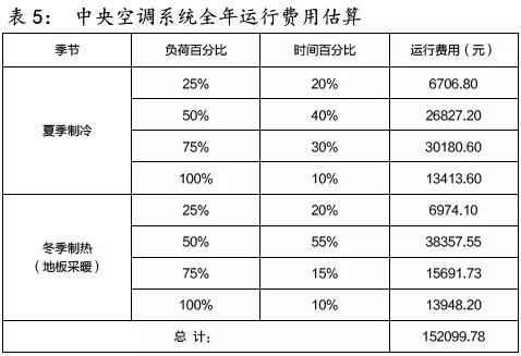 根據前述可知本空調系統機組的總功耗為20.5*6=123kWh,根據本項目目前的運行狀態,可預估系統全年運行費用,表格如下:
