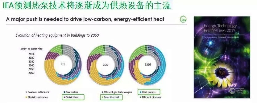 按照細則要求,為達到應(yīng)對全球氣候變化的總體目標,必須力爭在2030年將全球氣候升溫控制在2℃以內(nèi)。在國際能源署2017能源技術(shù)展望中顯示,要推動全球氣候變化總體目標的實現(xiàn),空氣源熱泵等將會成為一個關(guān)鍵元素。