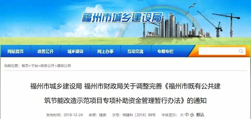 福州市城鄉(xiāng)建設(shè)局 福州市財政局關(guān)于調(diào)整完善《福州市既有公共建筑節(jié)能改造示范項目專項補助資金管理暫行辦法》的通知