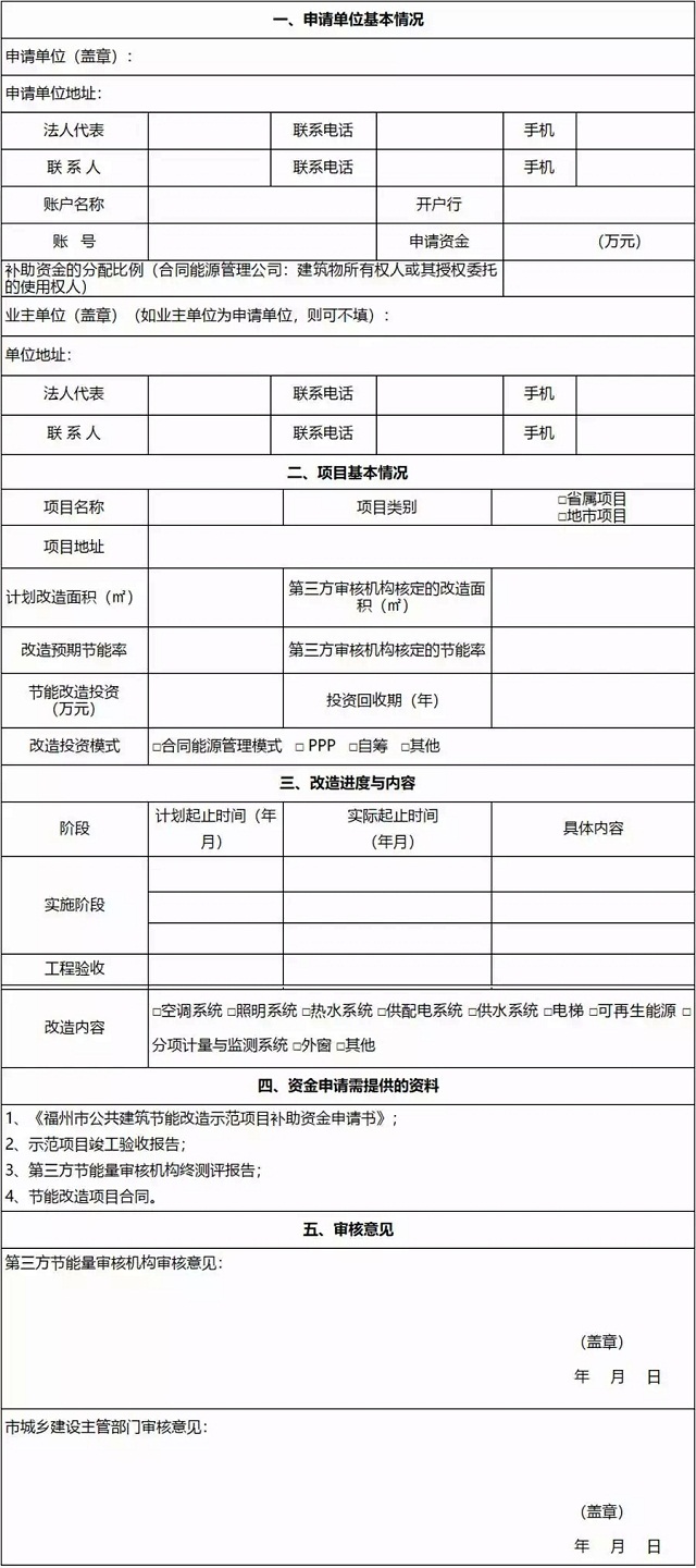 福州市公共建筑節(jié)能改造示范項目補助資金申請書